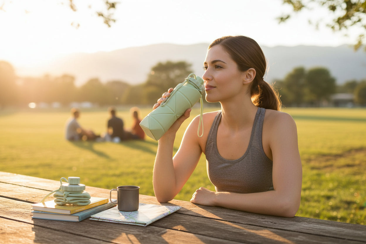 Soft elegance meets smart, foldable hydration.